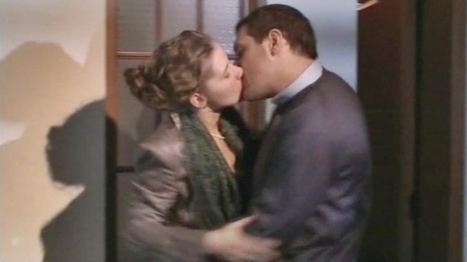 Anna has a drink with Igor at his place. When he makes his move and kisses her, she kisses back briefly before pulling away and leaving (1:03:33).